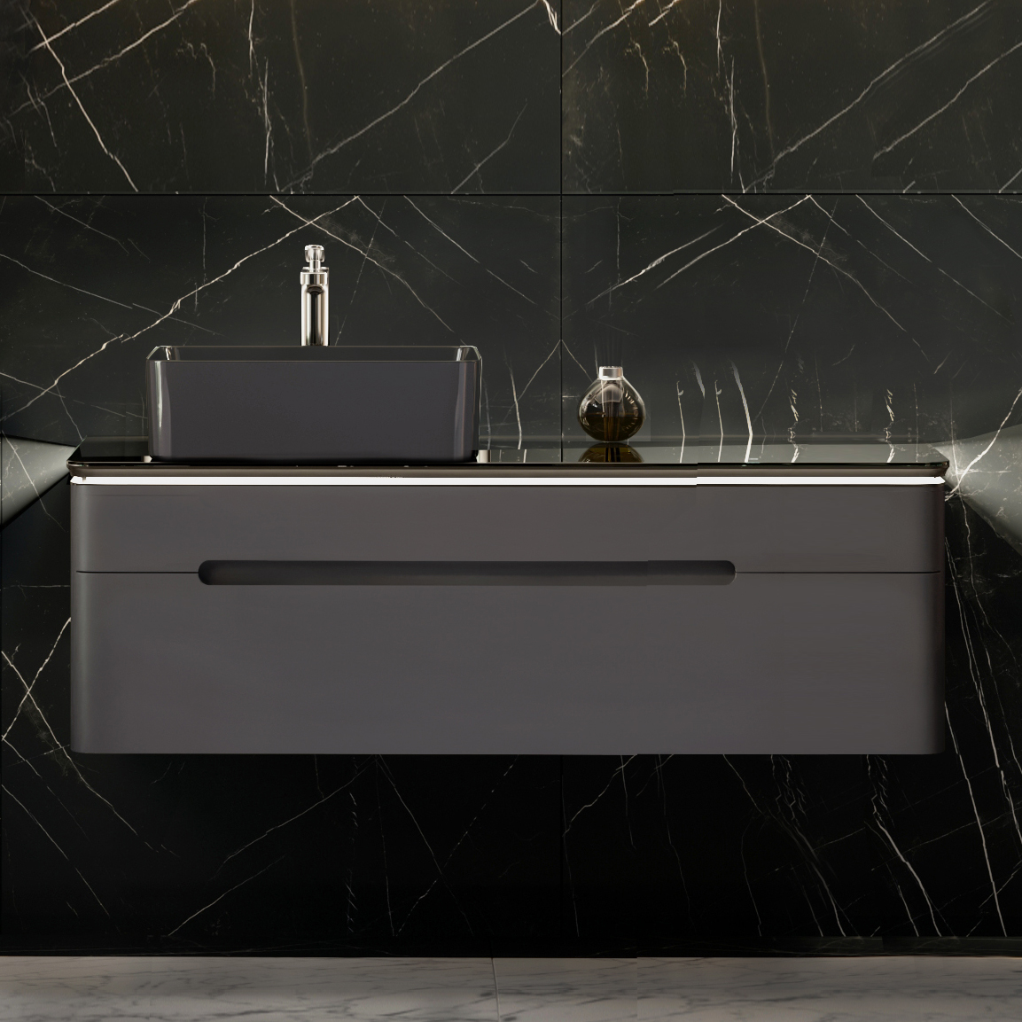 - Эргономичный дизайн — лаконичный внешний вид и сдержанная расцветка "антрацит" прекрасно впишутся в любой интерьер ванной комнаты.