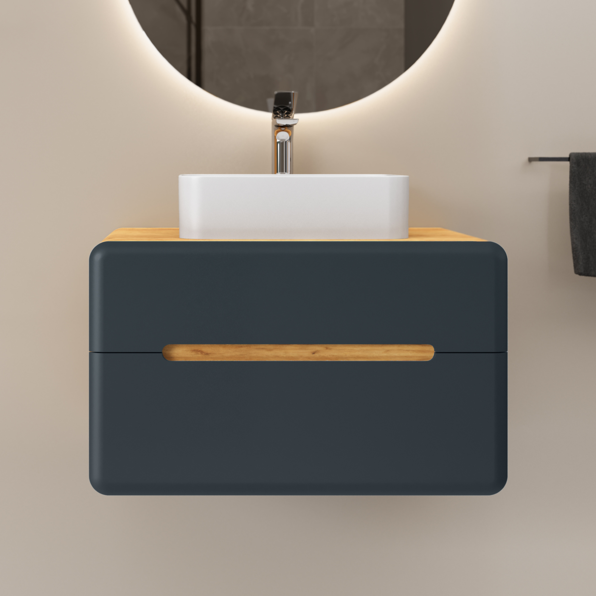 Тумба под раковину RAVAL — тумба Solare 80 (подвесная), дуб Крафт, золотой/антрацит