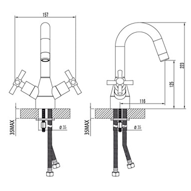 - Хромированное покрытие придает изделию эстетичный внешний вид и устойчиво к коррозии и образованию пятен от жесткой воды.