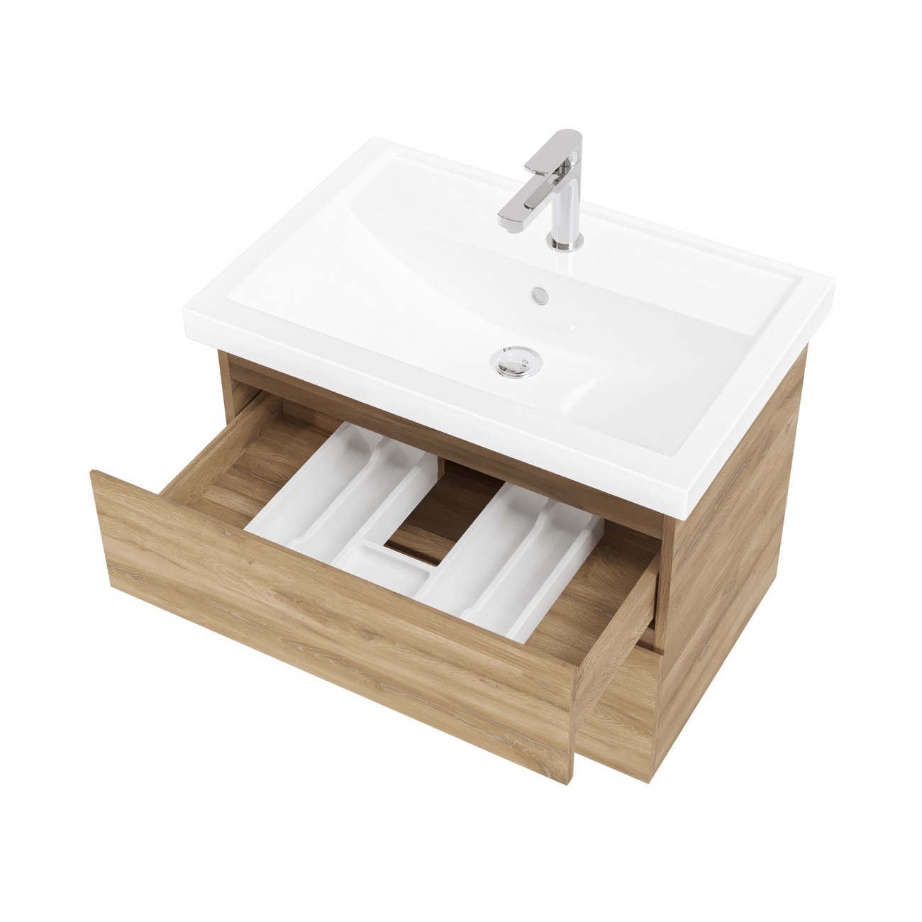 Подвесной дизайн тумбы Rose 70 позволяет эффективно использовать пространство помещения и облегчает доступ к содержимому. Два вместительных ящика обеспечат удобное хранение различных мелочей и предметов личной гигиены, создавая порядок и комфорт.