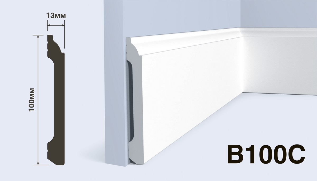 Размер плинтуса: 100 мм x 13 мм x 2 м